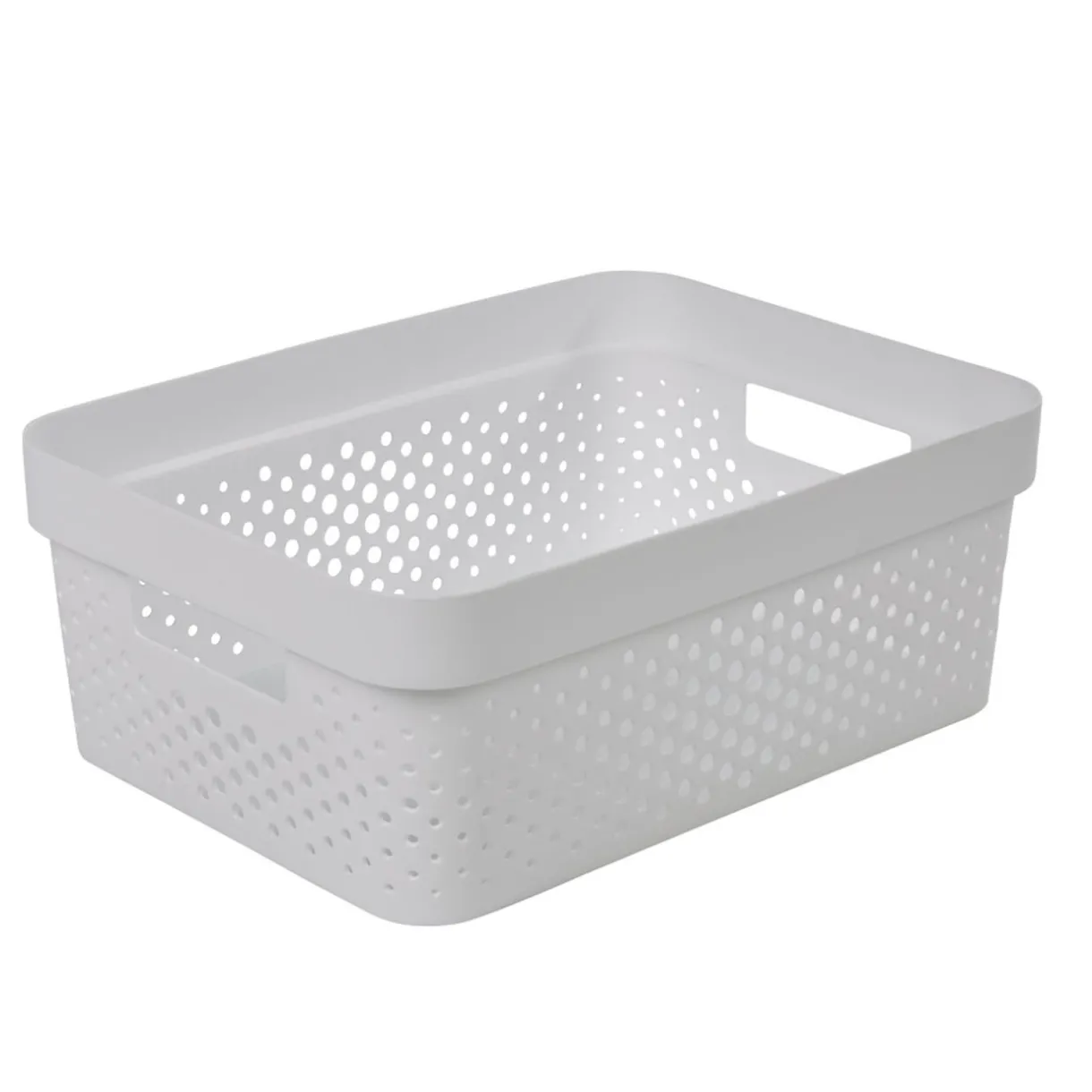 Pratique ce bac de rangement d’une contenance de 11 L vous permettra d’organiser vos produits et accessoires en toute simplicité. Son design épuré en plastique blanc et ajouré de petits trous se fondra facilement dans toutes les pièces de la maison.