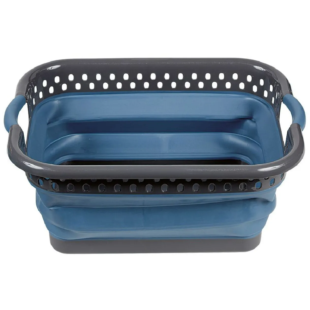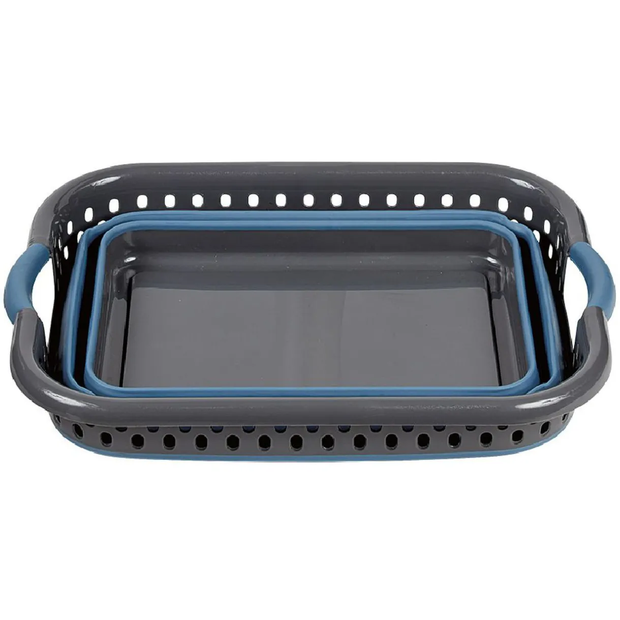 Panière rétractable en plastique bleu et gris avec deux poignées latérales.