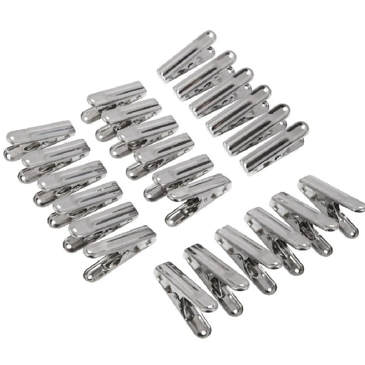 Lot de 24 pinces à linge grises en inox.