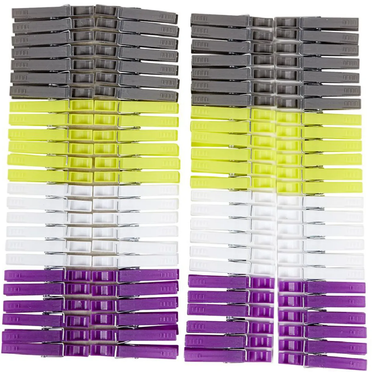 Le lot est composé de pinces de couleurs différentes : violet, blanc, jaune, gris.