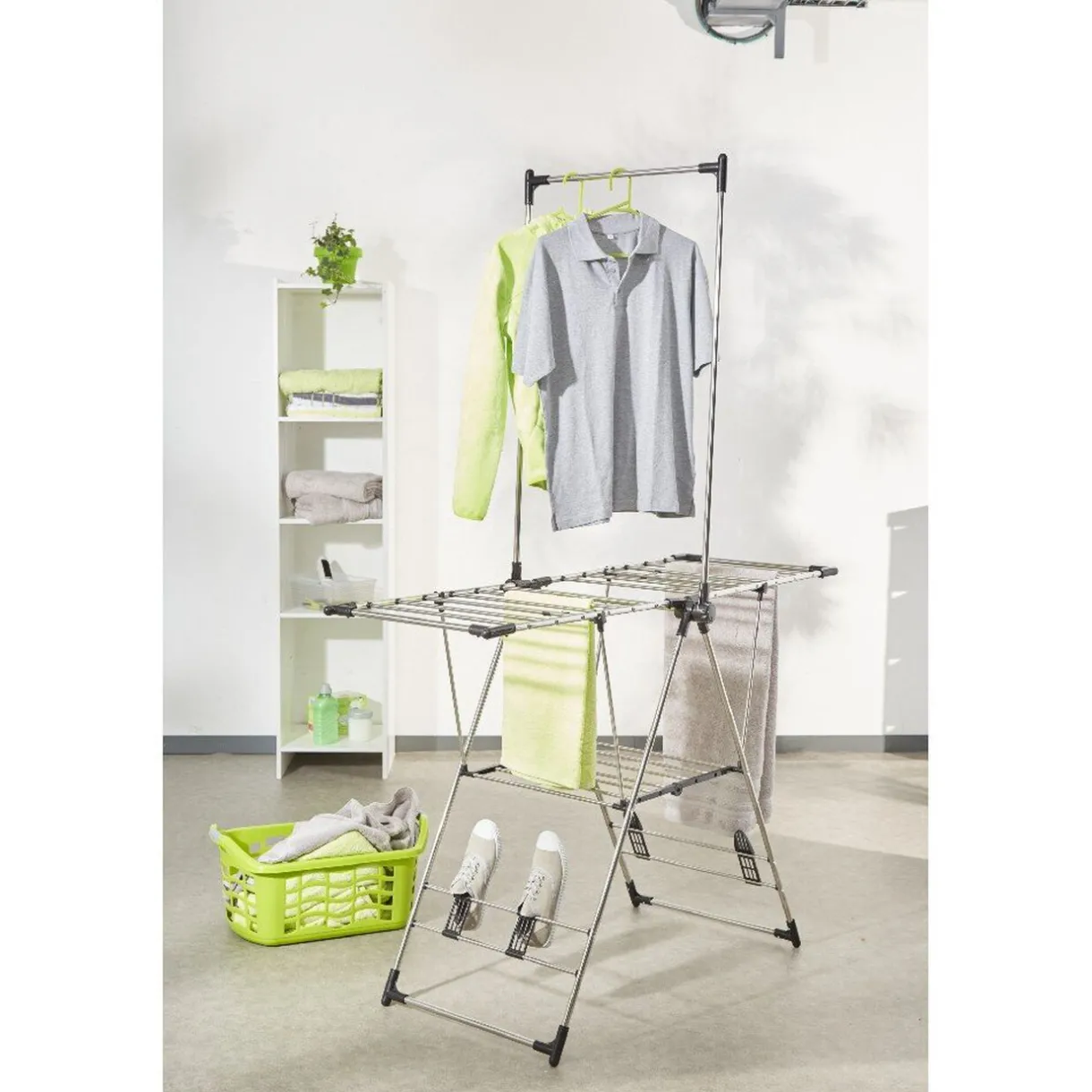 Séchoir de 18 m d’étendage avec portant intégré, idéal pour séchage à plat, support pour chaussures.