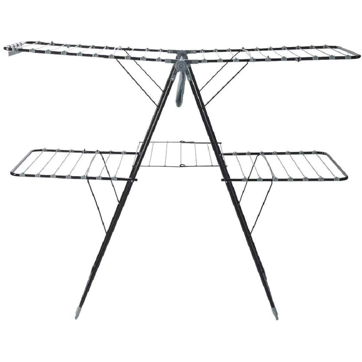 Séchoir horizontal gris et noir sur deux niveaux avec une capacité de 32 mètres d’étendage.