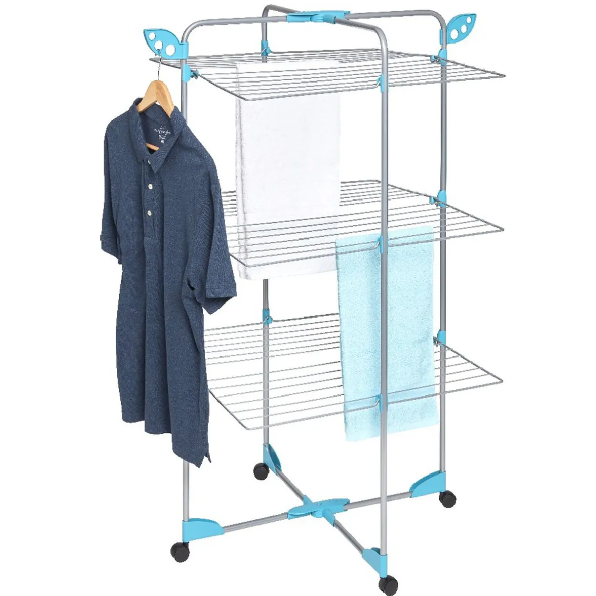 Séchoir tour à 3 niveaux de 30 m d’étendage, pratique pour sécher son linge en hauteur sans occuper tout l’espace de votre intérieur.