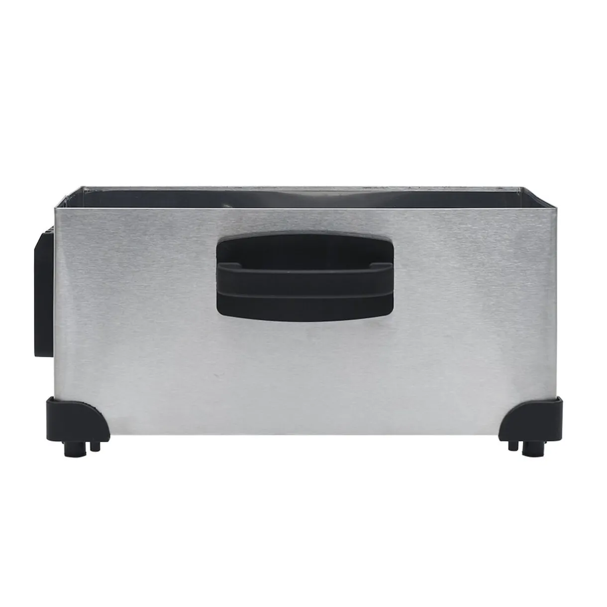 Friteuse Homday d’une contenance de 3 L, avec cuve amovible en inox et pieds antidérapants.