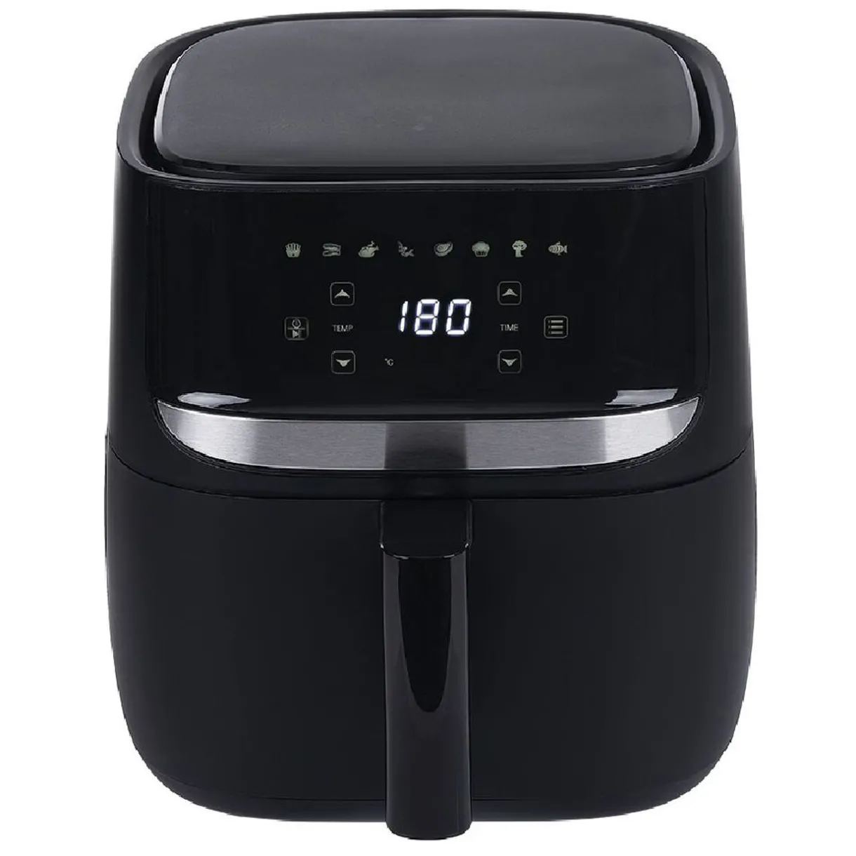Friteuse noire sans huile avec écran digital et 8 programmes de cuisson.