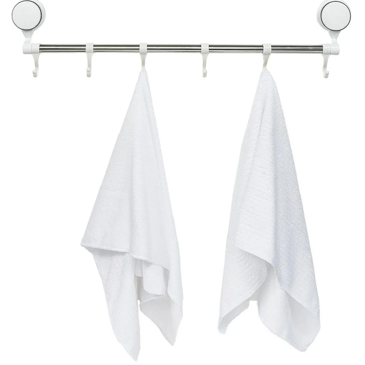 Facile d’installation sans vis ni perçage, cette barre porte-serviette dotée de 6 crochets se fixe à l’aide de 2 ventouses sur toutes surfaces lisses de votre salle de bain.