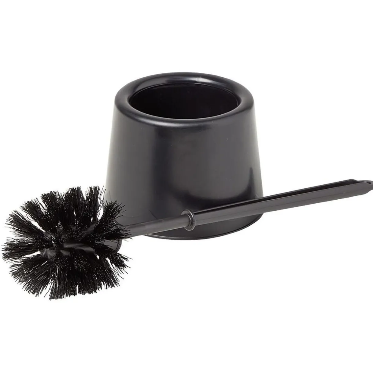 Brosse WC en plastique avec support, le tout de couleur noire.