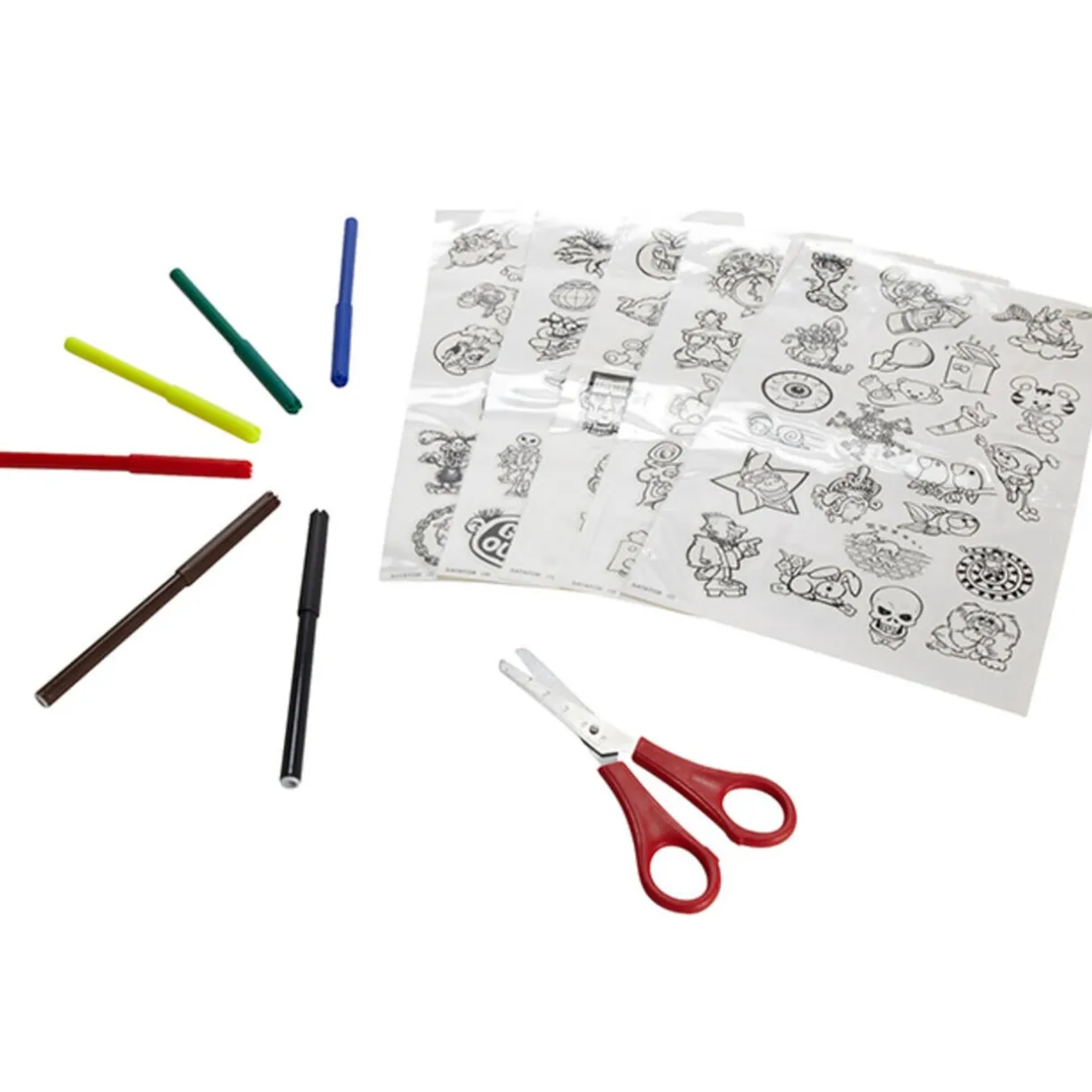 Coffret 100 modèles de tatouages à colorier. Dès 6 ans.