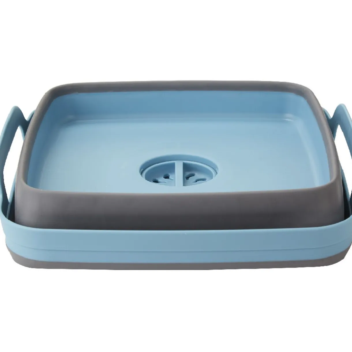 Évier rétractable avec ouverture d’évacuation en bas et 2 poignées. Pratique comme évier d’appoint pour le camping ou pour les petites cuisines. Pliable, il se range facilement après utilisation.