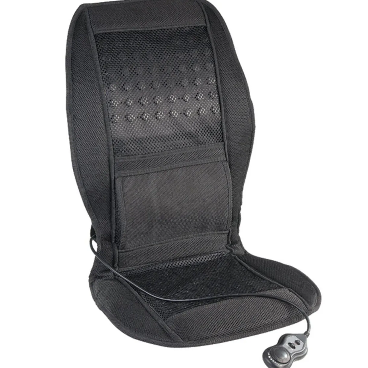 Fauteuil massant Mességué qui s’adapte à tous les sièges. Des vibrations apaisantes, chaleur, double mécanisme de massage, télécommande : 6 programmes. Fonctionne sur secteur..