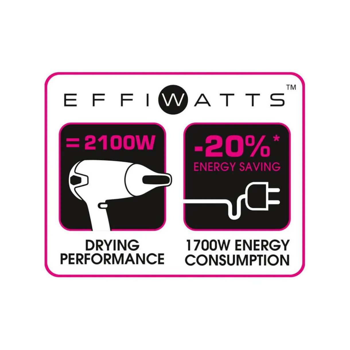 Sèche-cheveux Calor Studio Dry rose et noir avec une puissance équivalente à 2 100 W tout en ne consommant que réellement 1 700 W, soit 20% de moins d’énergie consommée ! Ce sèche-cheveux vous offre un séchage rapide et efficace. De plus, le concentrateur exclusif Triple Air Precision vous permet une finition parfaite de toutes vos coiffures, et pour un résultat longue durée vous pourrez utiliser la touche Air froid à la fin de votre séchage.