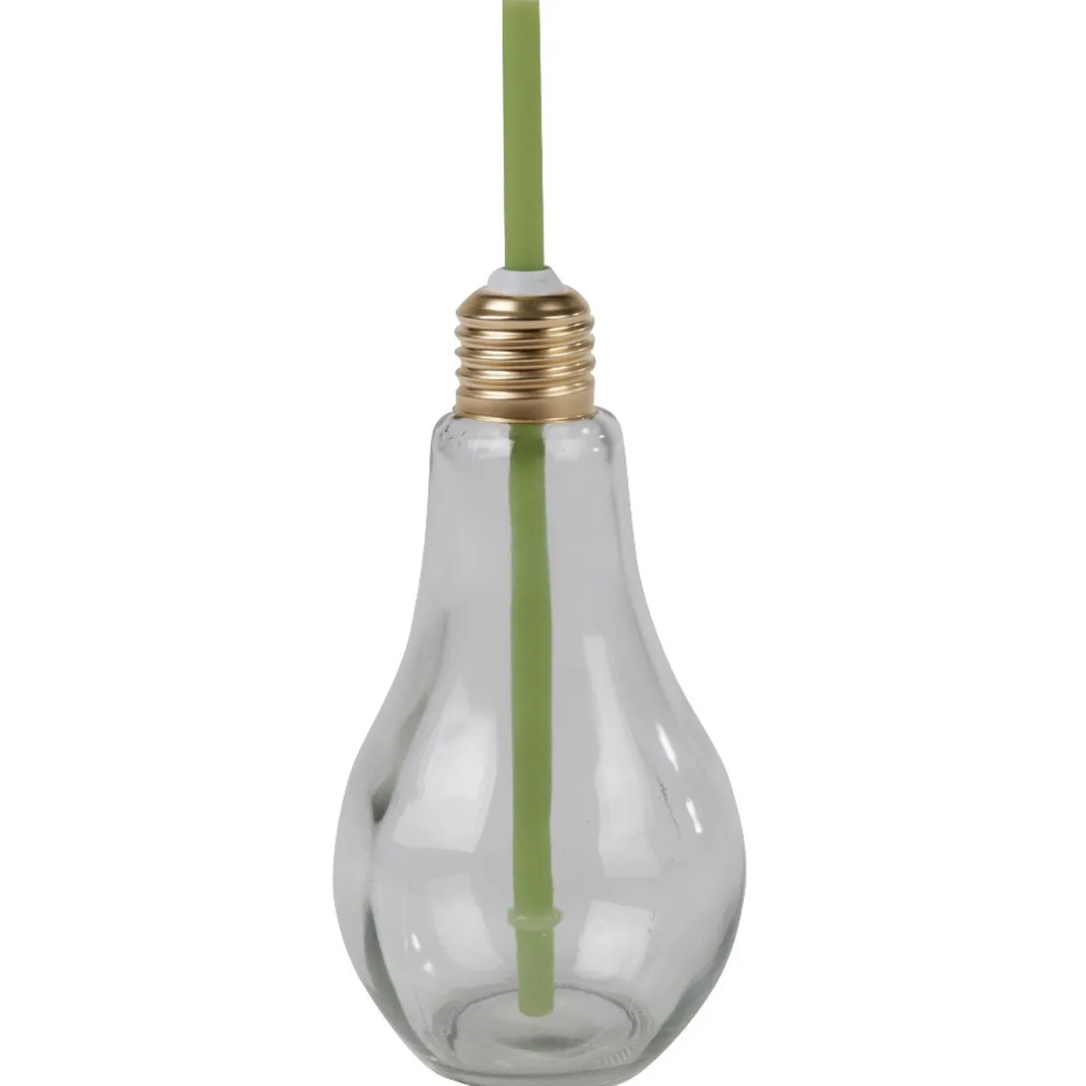 Verre en forme d’ampoule avec paille colorée.