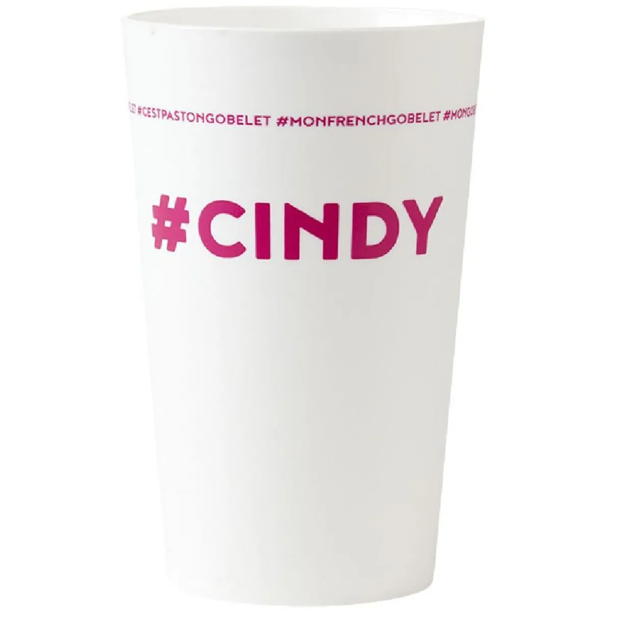 Gobelet #CINDY en plastique blanc et rose. Existe en différents prénoms.
