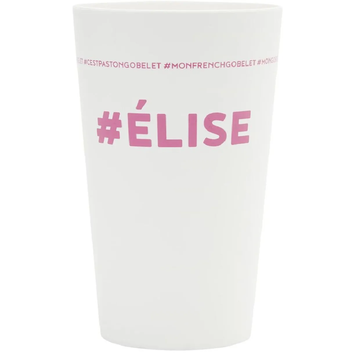 Gobelet réutilisable en plastique blanc avec inscription rose #ÉLISE.