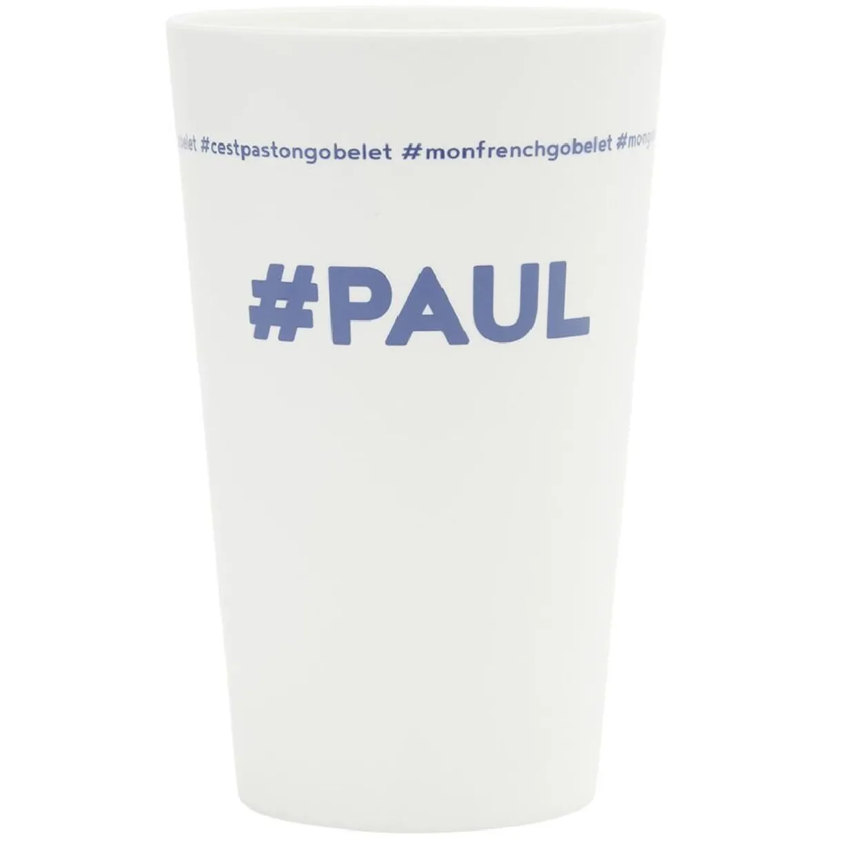 Gobelet réutilisable en plastique blanc avec inscription bleue #PAUL.