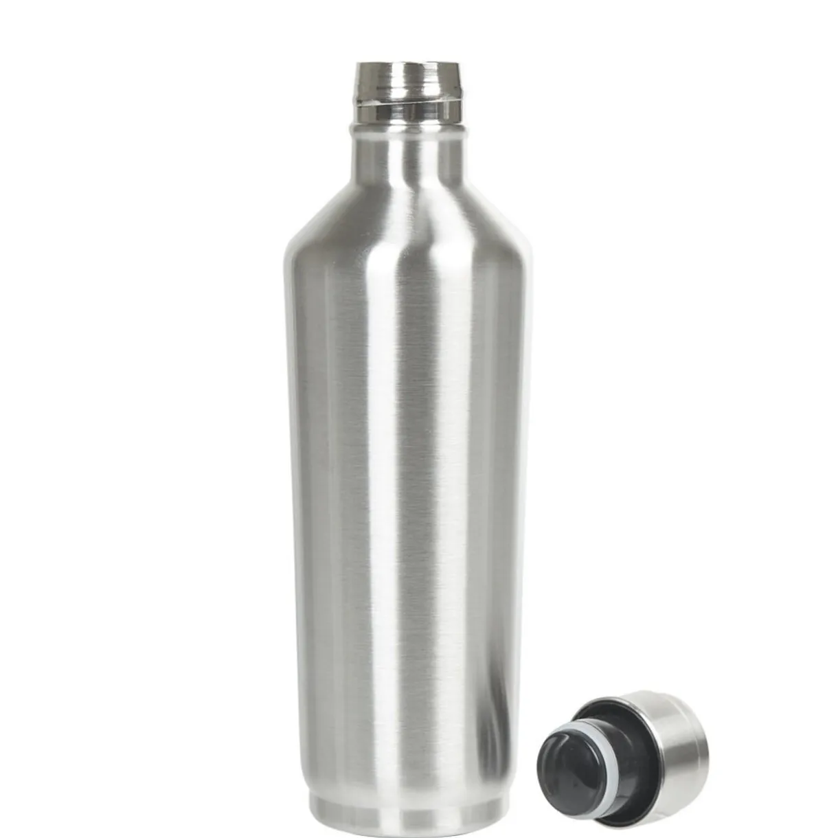 Gourde isotherme double paroi gris chromé.