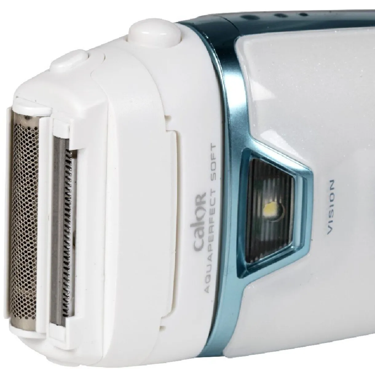 Epilateur Calor aquaperfect soft, épilation sous l’eau sans douleur. 2 accessoires : tondeuse bikini et accessoire pour zones délicates. Trousse incluse.