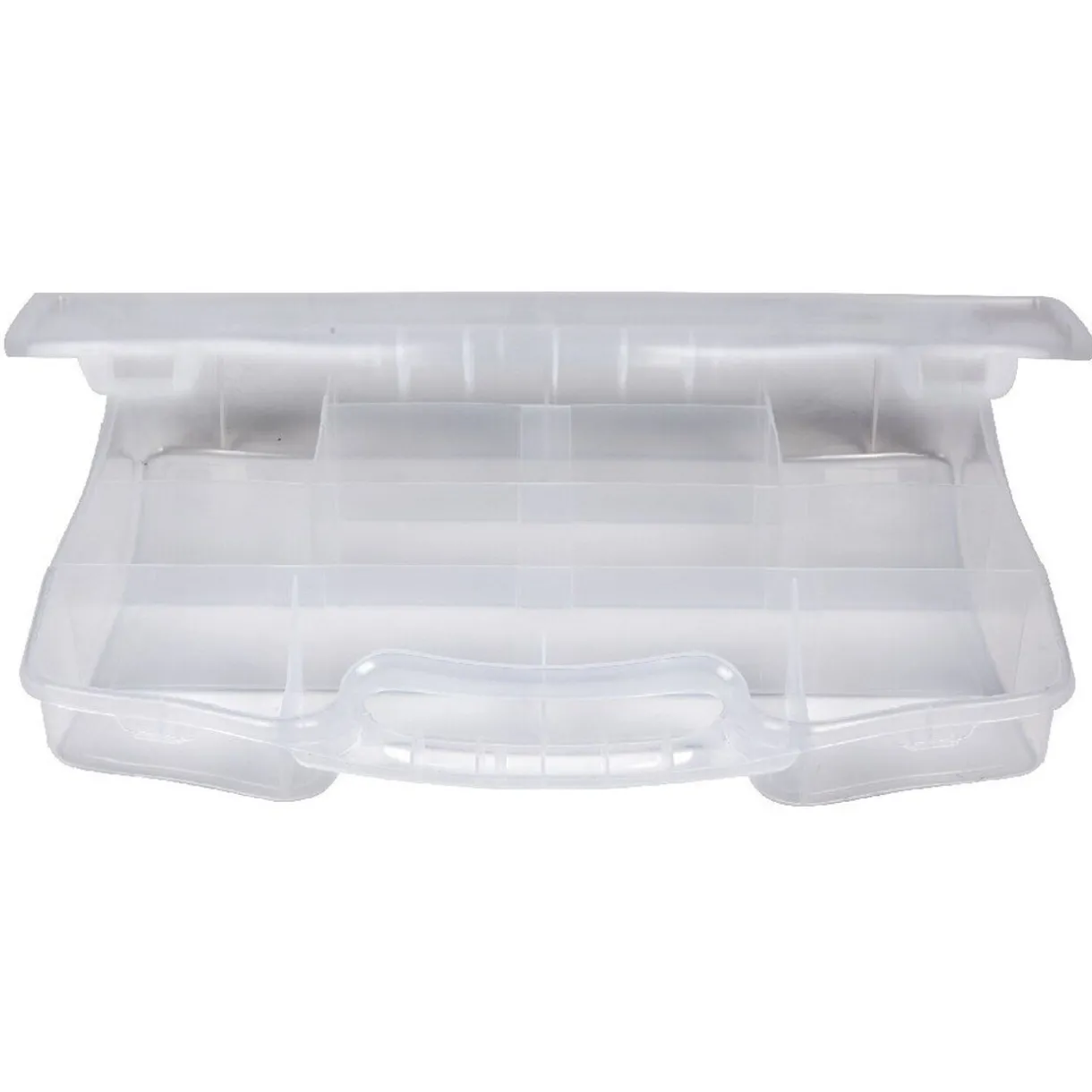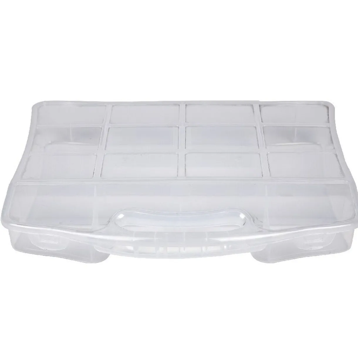 Mallette compartimentée transparente pour bricolage, dim. 35×25,5×5,5 cm, plastique.