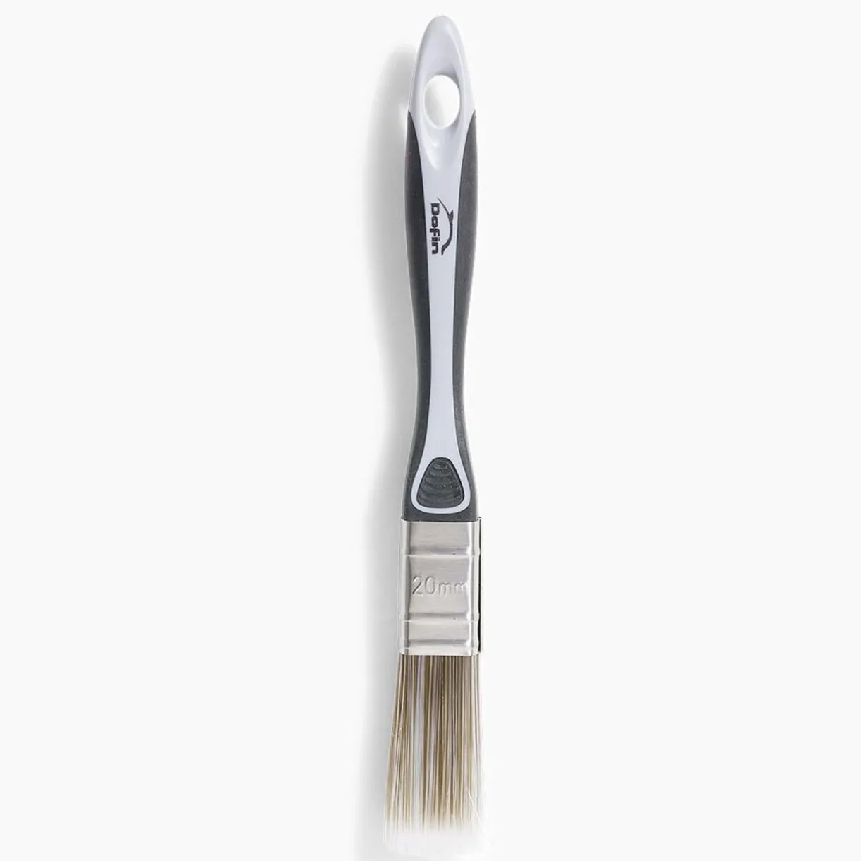 Pinceau plat en poils synthétiques de 20 mm de large avec manche bi-matière.
