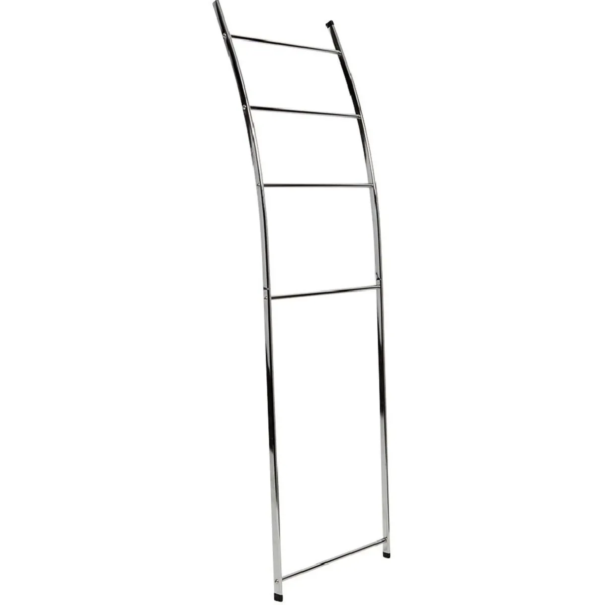 Porte-serviettes échelle en métal au design légèrement arqué, pratique et facile à installer dans tous les styles de décor.