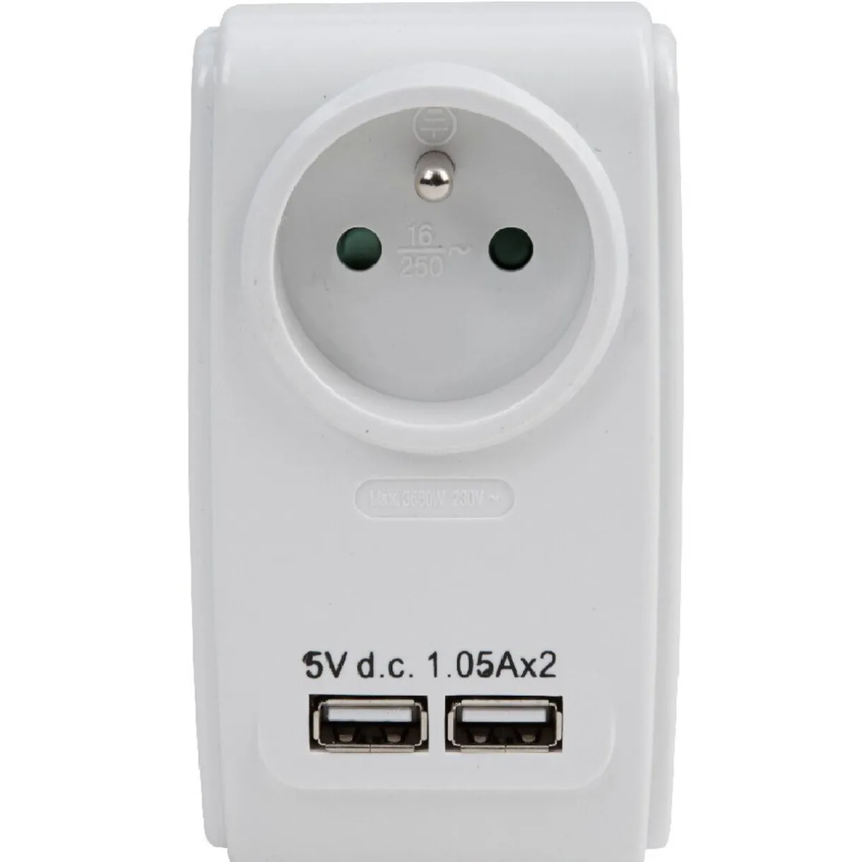Prise chargeur 1x 230V et 2 ports USB, dim. 20x15x8 cm, polypropylène..