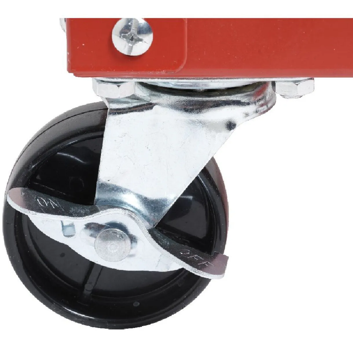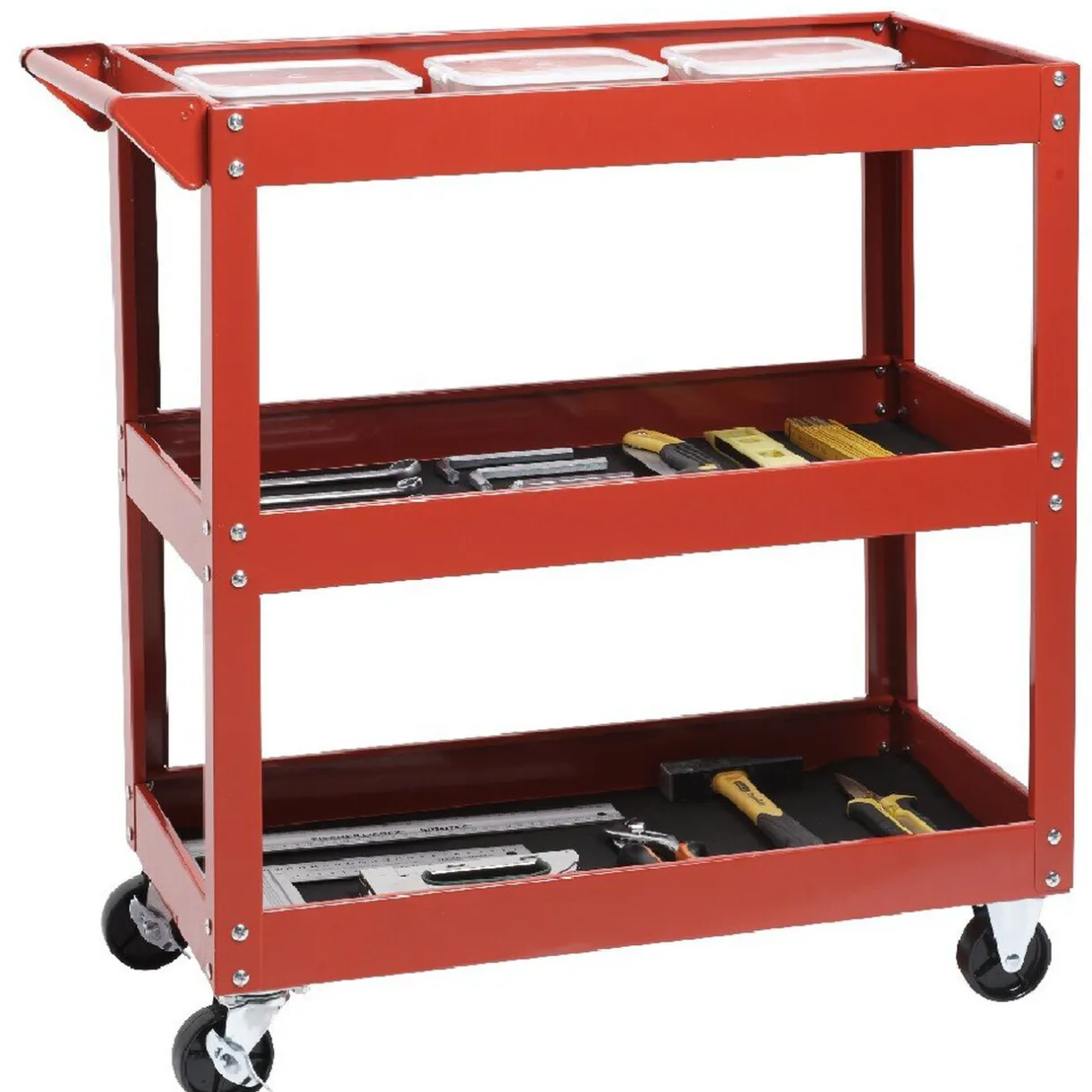 Organisez votre espace de travail sur 3 étages grâce à ce chariot métallique rouge à la fois design et pratique. La servante d’atelier est munie de roues pivotantes que l’on peut bloquer si besoin.