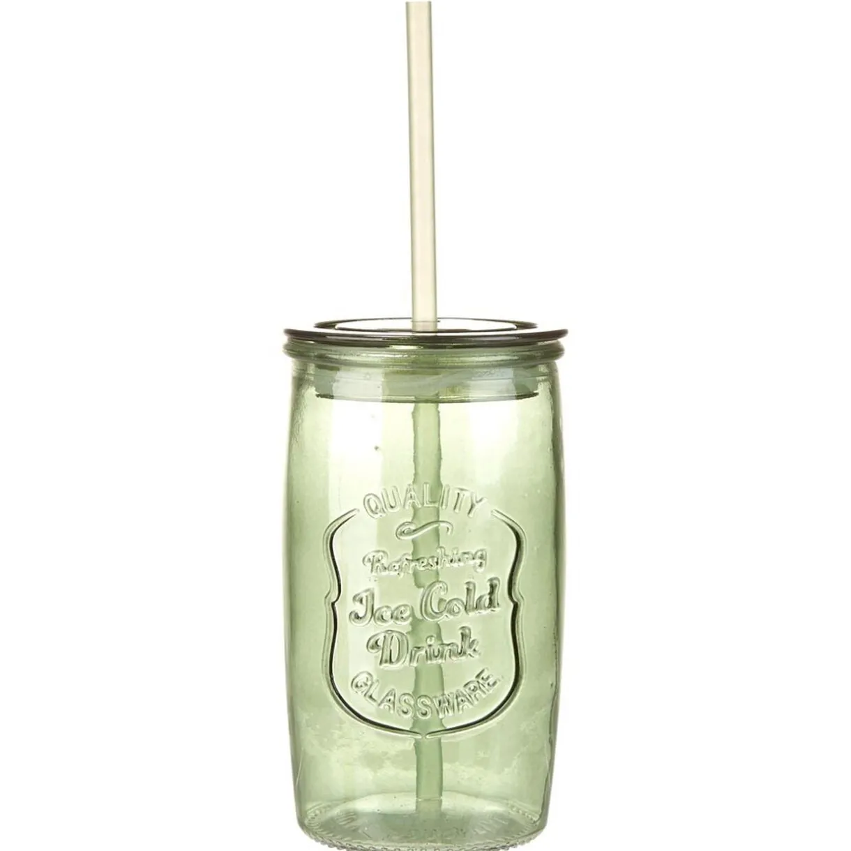 Jarre avec couvercle et paille en verre^Gifi Sale