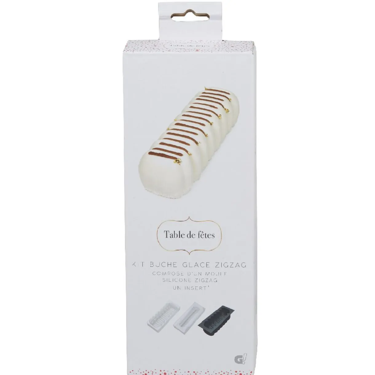 Ouvrez l’appétit de votre famille avec une savoureuse bûche blanche au zigzag caramel rappelant la couleur marron du bois relevée par la neige tombante. Grâce à l’insert à motifs zigzag inclus pour la coulée et au moule en silicone de ce kit, vous mitonnerez une bûche enneigée grâce à la notice incluse.