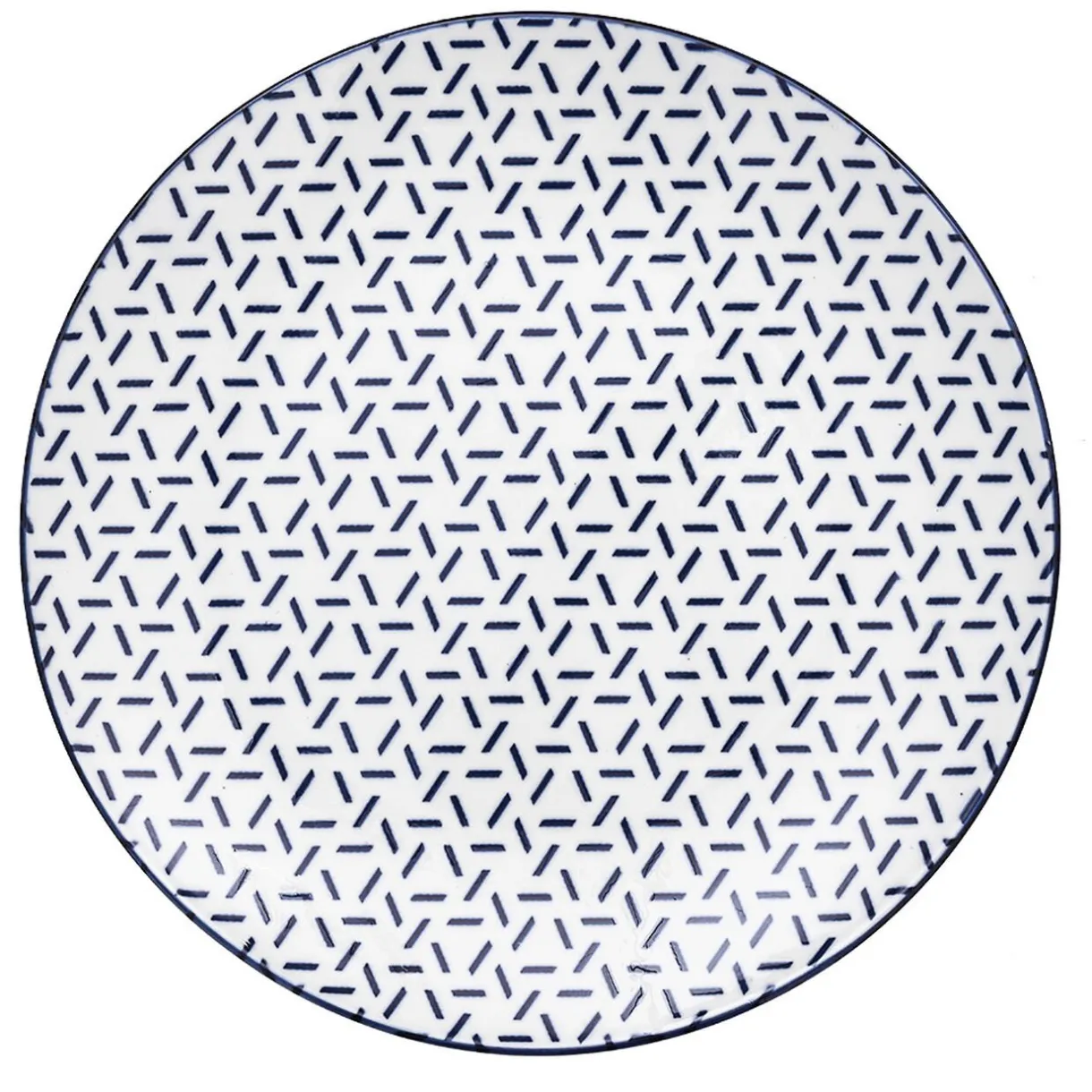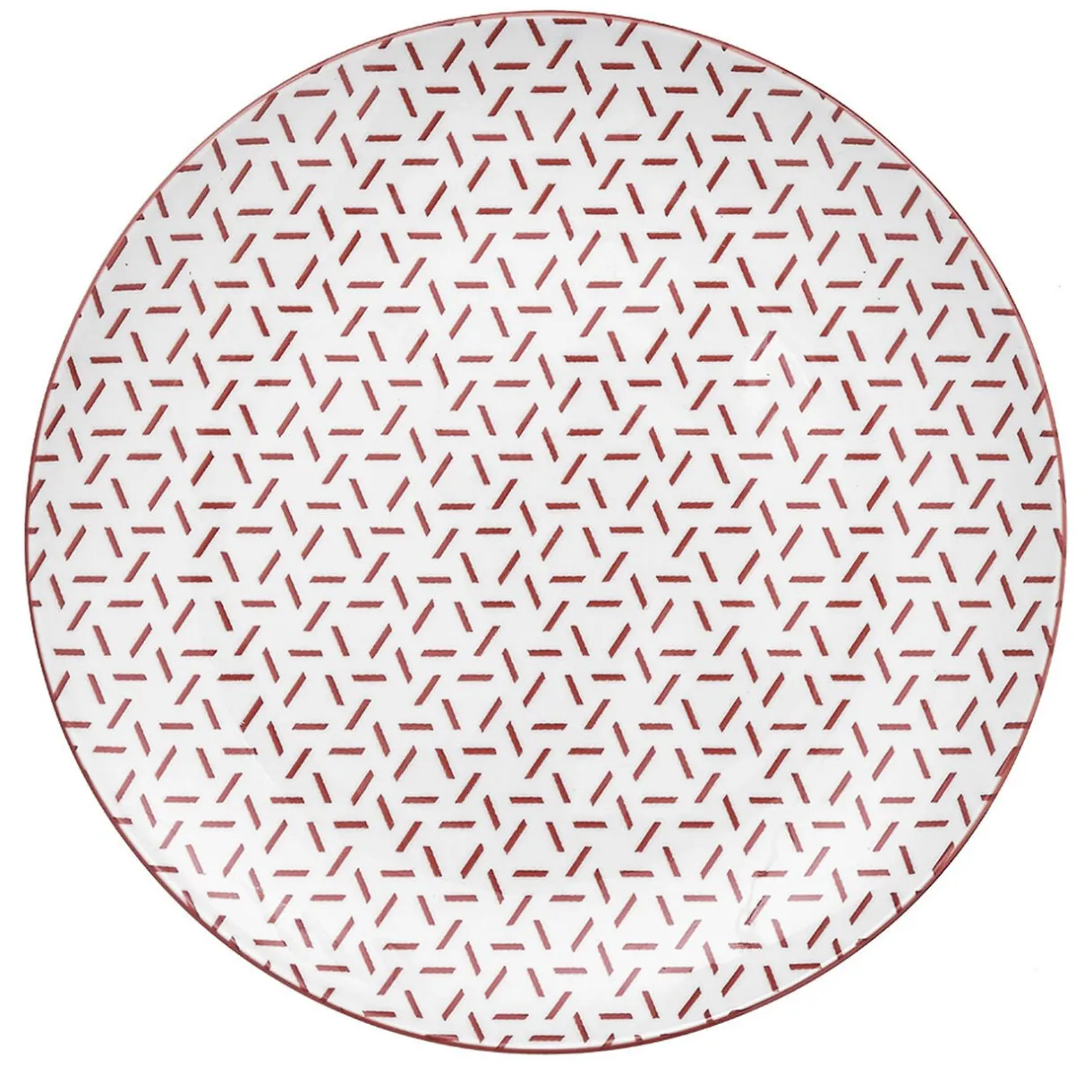 Set de 4 assiettes à dessert en porcelaine blanche avec contour et motifs petits traits colorés formant des triangles, idéal pour créer des mix and match de couleur sur votre table.