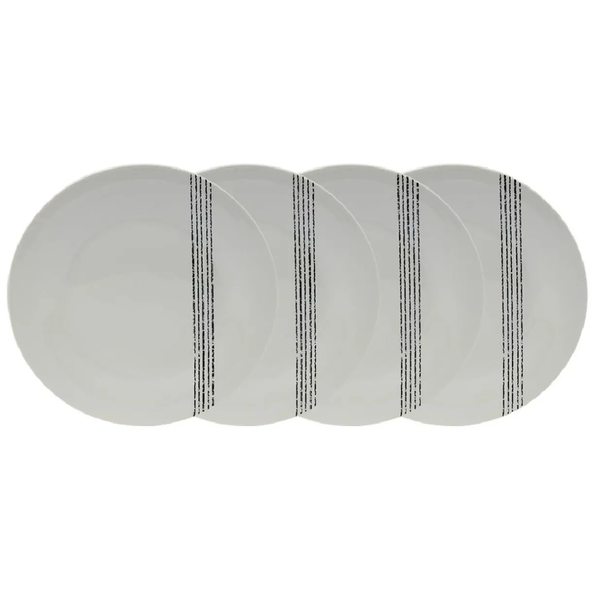 Service de 4 assiettes blanches design « Brasserie Bistrot » avec inscription et motifs noirs assortis.