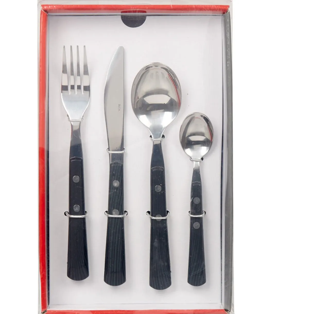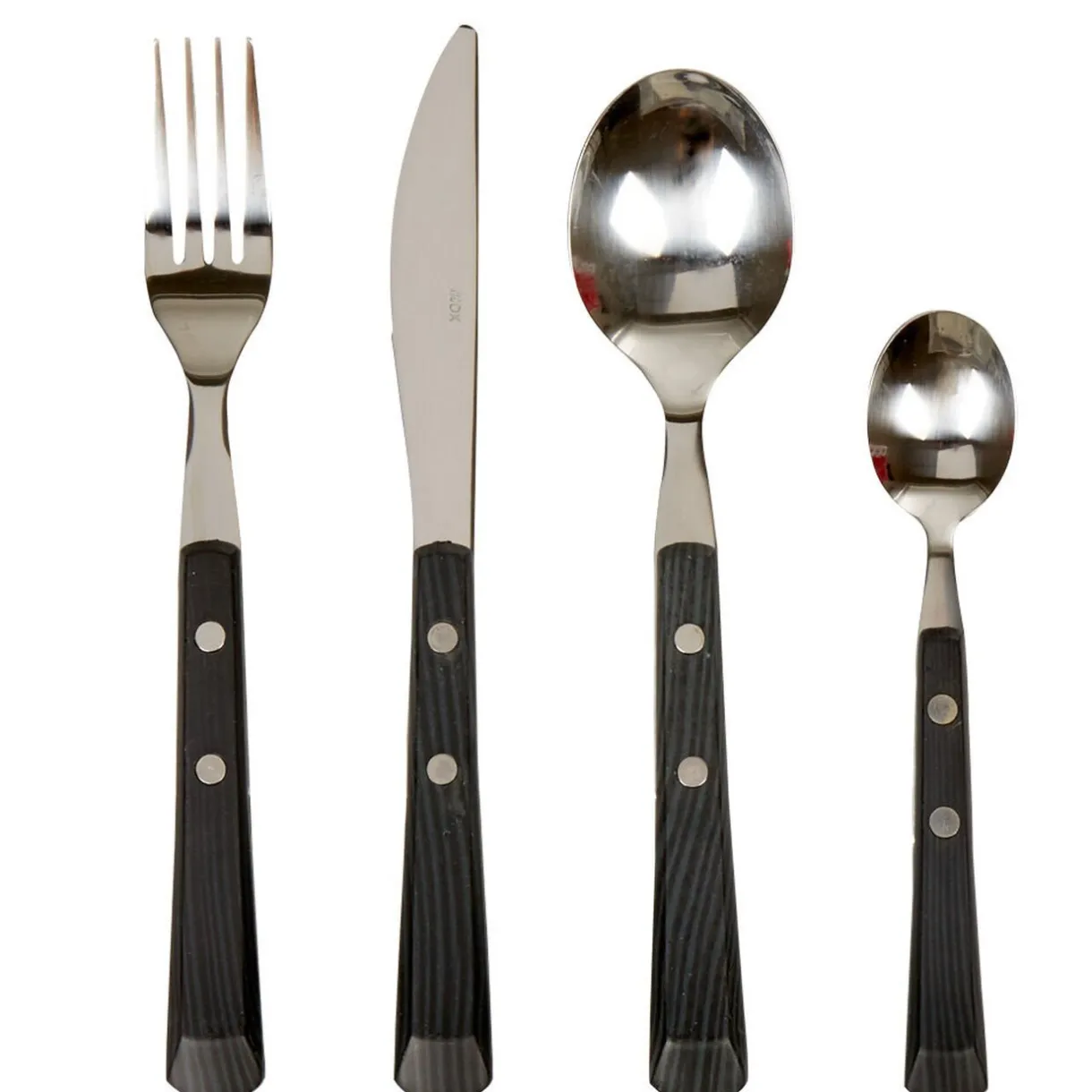 Ménagère 16 pièces manche effet bois noir et manche plastique.