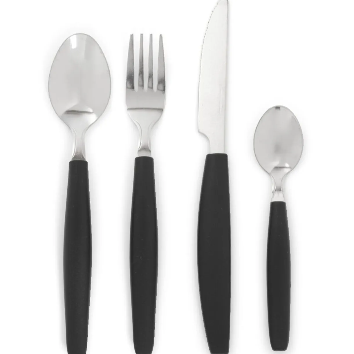 Optez pour une ménagère pratique et basique, facile à intégrer à tout dressage de table, avec cette ménagère qui se compose de 24 couverts en acier inoxydable avec manche en plastique noir.