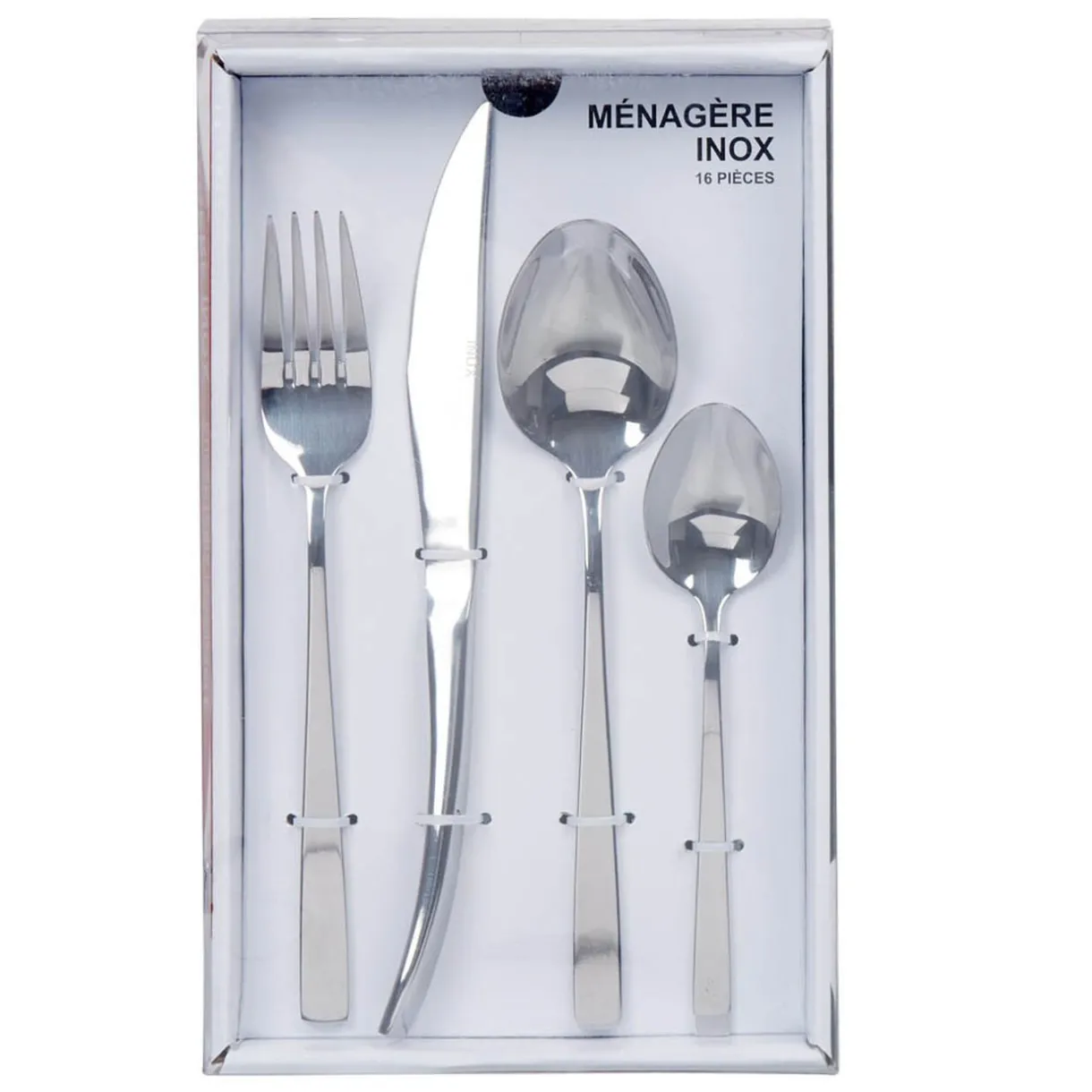 Cette ménagère hotelière comprend 16 pièces en inox :