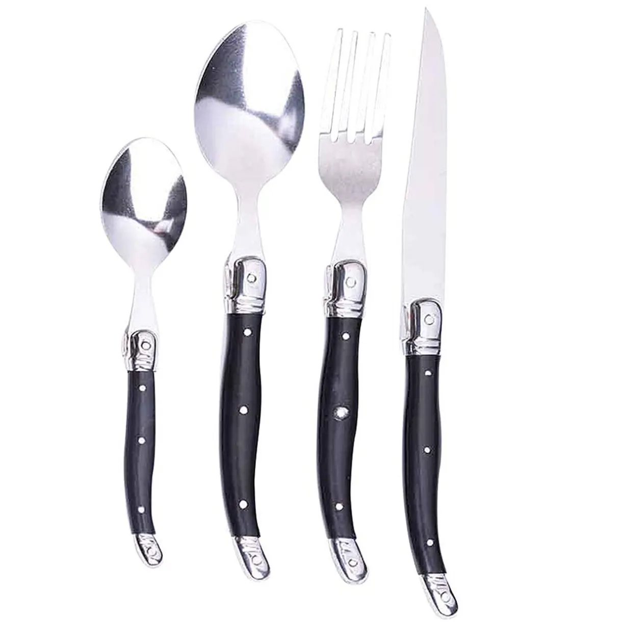 Cette ménagère comprend 24 pièces en inox avec manche noir :