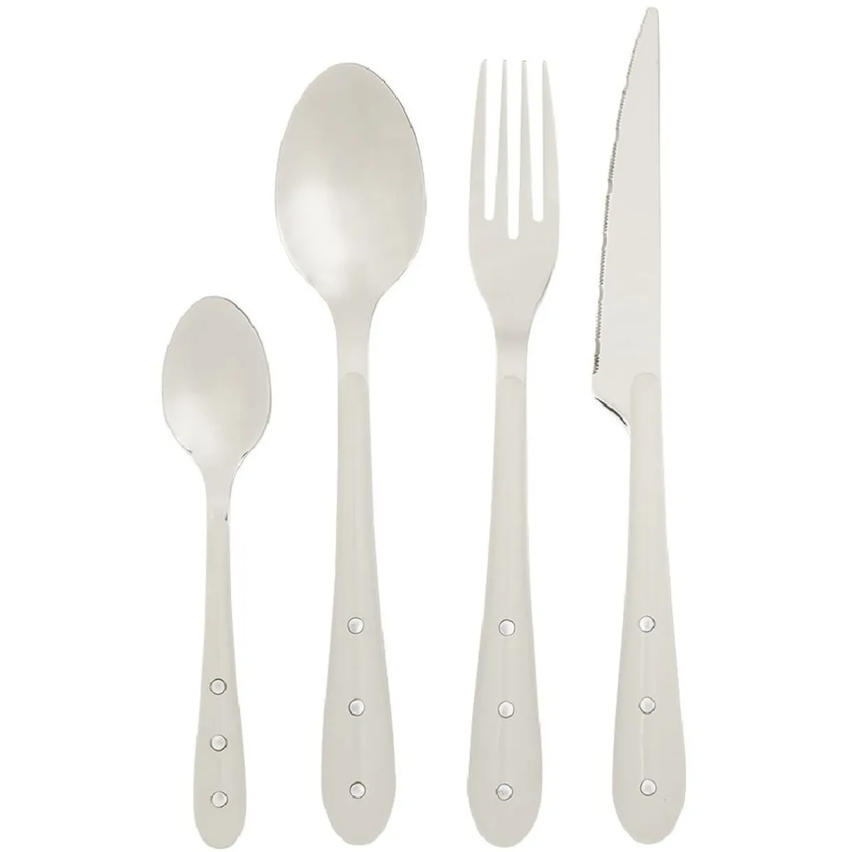 Ménagère Lisa D’Alban composée de 16 couverts en inox avec manche de couleur blanche :