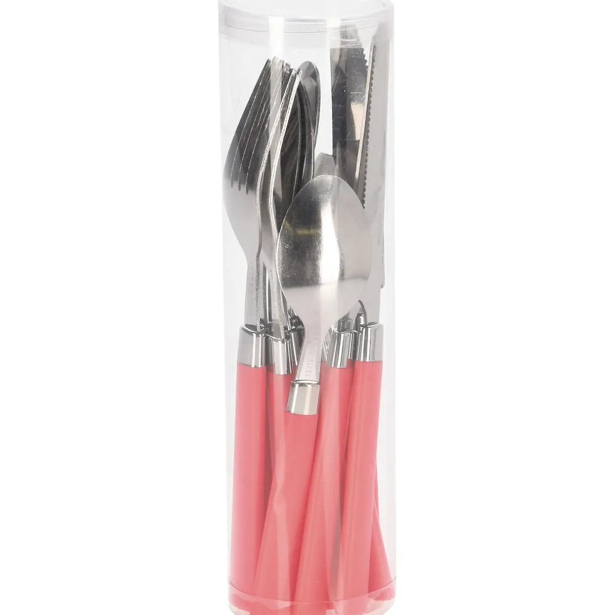 Ménagère avec couverts à manches bleus, composée de 12 pièces :