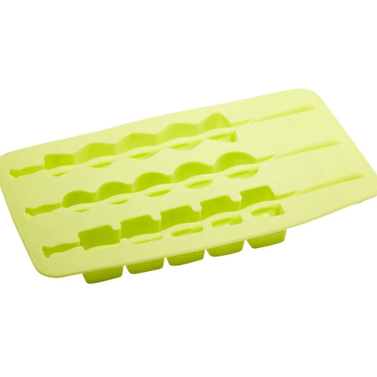 Moule à glaçons vert en forme de brochette, idéal pour rafraîchir vos boissons estivales de manière originale.