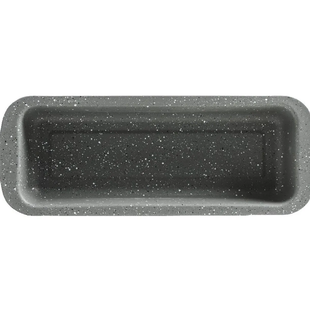 Moule à cake gris en métal, revêtement effet marbre.