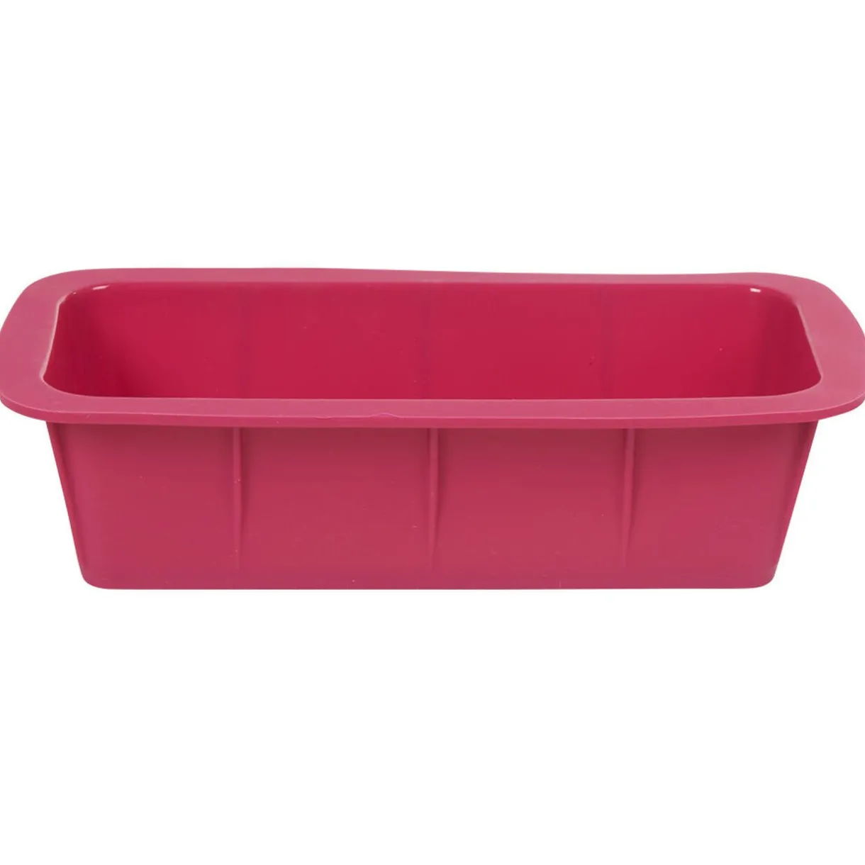 Moule à cake en silicone rose, ultra souple et résistant, idéal pour un démoulage facile.