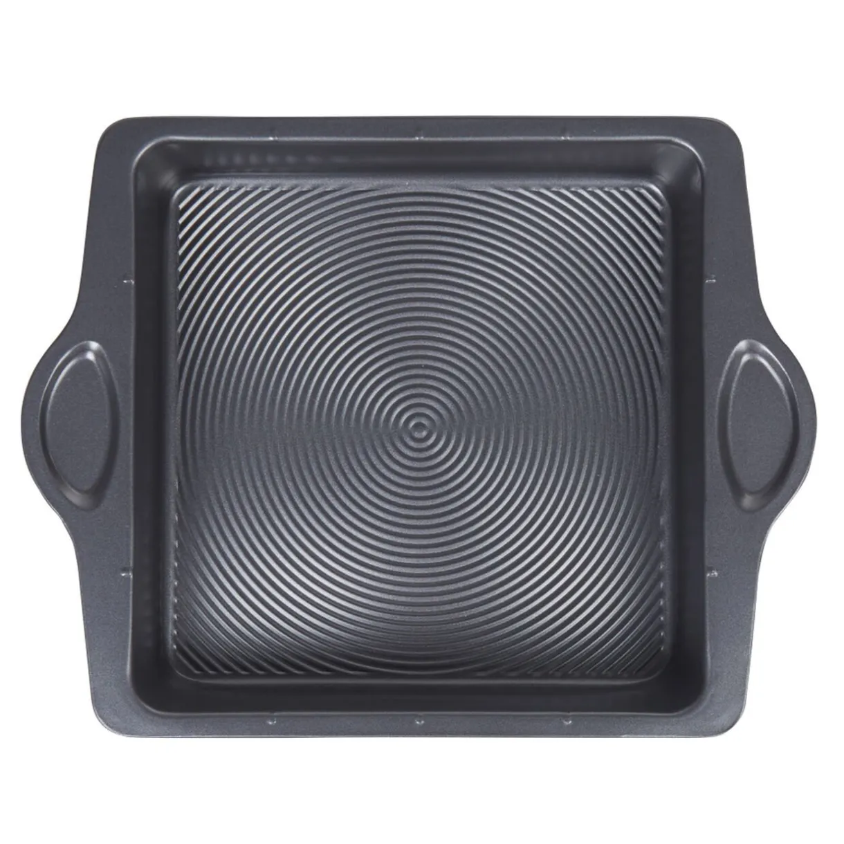 Moule carré en métal gris avec revêtement à fond texturépour un démoulage facile!