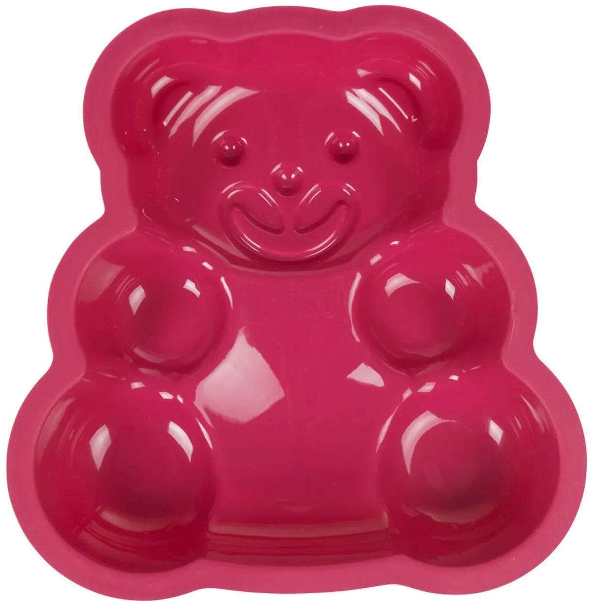 Moule en forme de nounours en silicone rose, ultra souple et résistant.