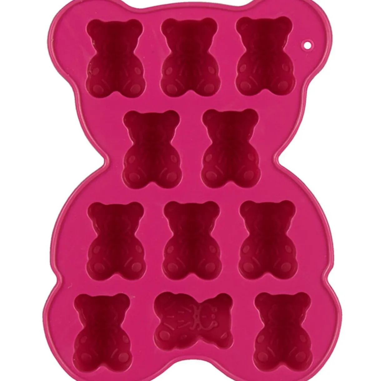 Moule en silicone pour 11 chocolats en forme d’oursons, planche dim. 15×11,5×1,8 cm, oursons dim. 3x2x1,5 cm. Diff. coloris, disponibilité selon arrivage.