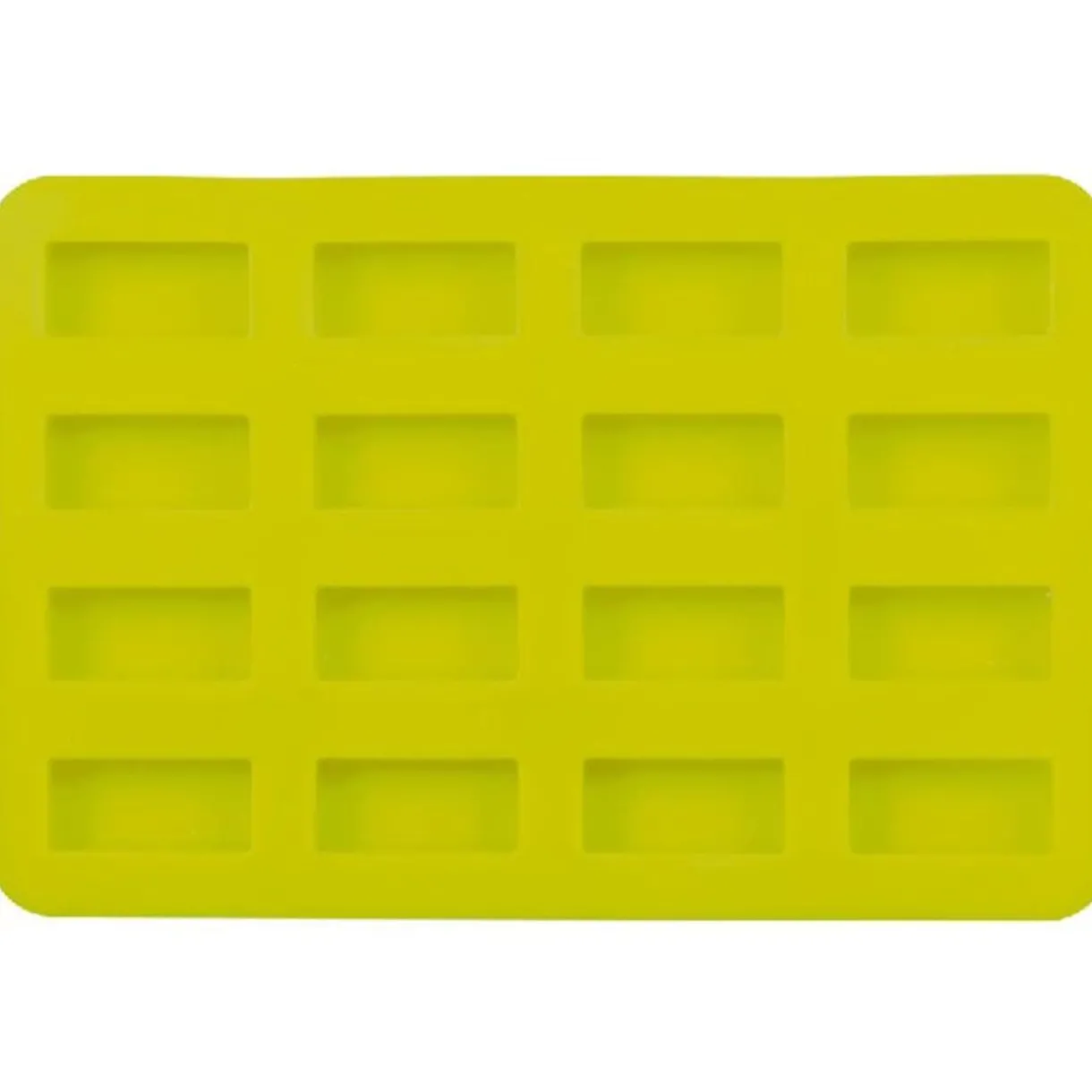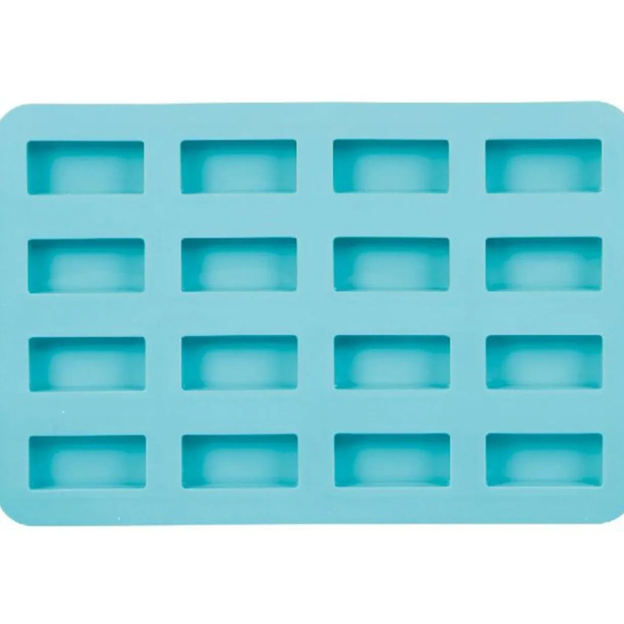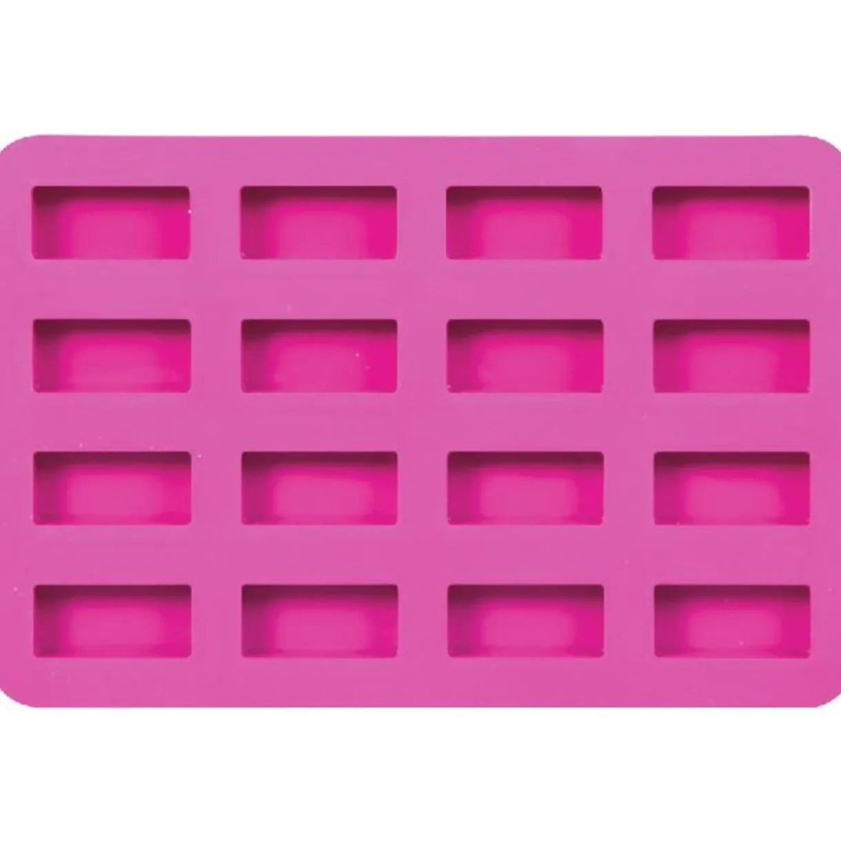 Dim. 23,7×16 cm, pour 16 mini-cakes dim. 2×4.3xh.0.9 cm, silicone, passe au four, congélateur, Micro-ondes, lave-vaisselle. Diff. coloris, disponibilité selon arrivage.