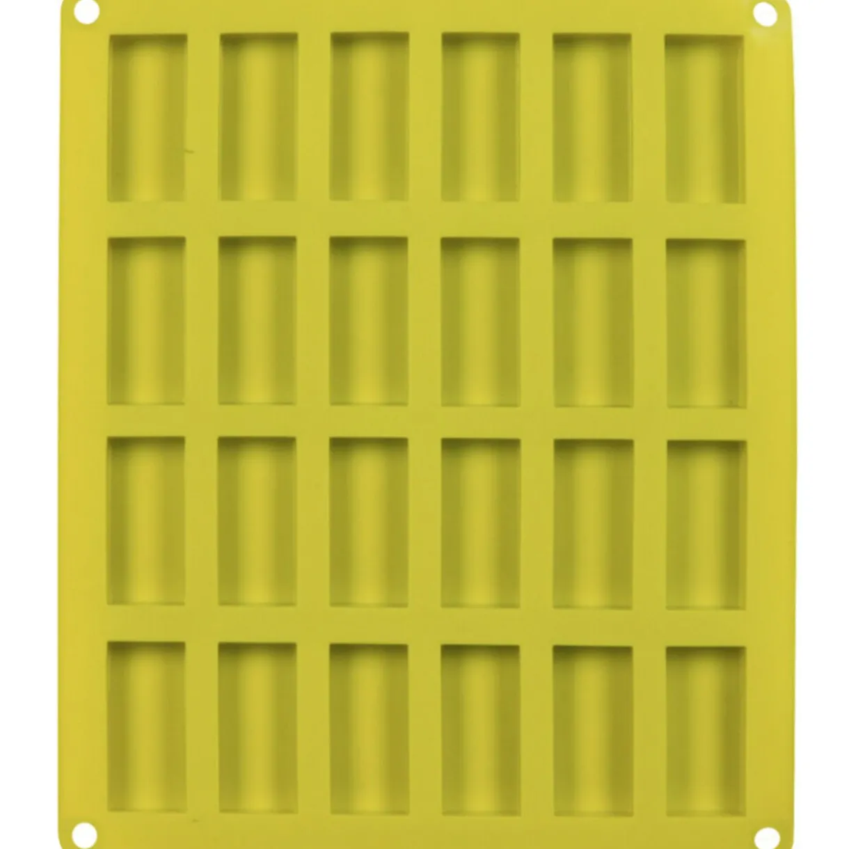 24 mini financiers moule silicone, cuisson four et Micro-ondes, passe au lave-vaisselle. Dim. de chaque mini financier : 5,5×2,5xh1 cm. Diff. coloris, disponibilité selon arrivage.