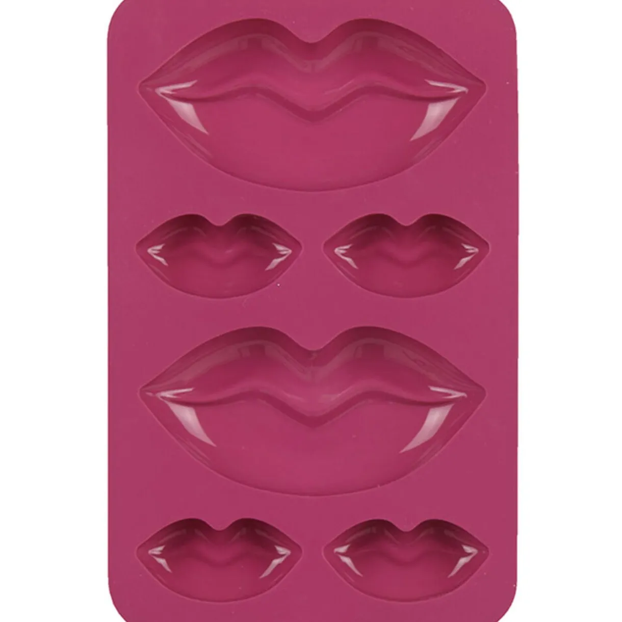 Moule en silicone de 6 bouches, planche dim. 17,5×11 cm, bouches dim. 9,5×4,5 cm et 4,5×2 cm. Diff. coloris, disponibilité selon arrivage.
