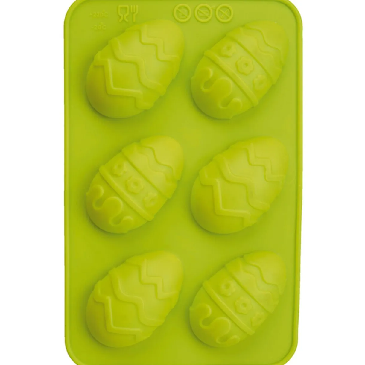 Moule silicone de 6 oeufs L. 5 cm, planche dim. 17,5x11x1,5 cm. Diff. coloris, disponibilité selon arrivage.