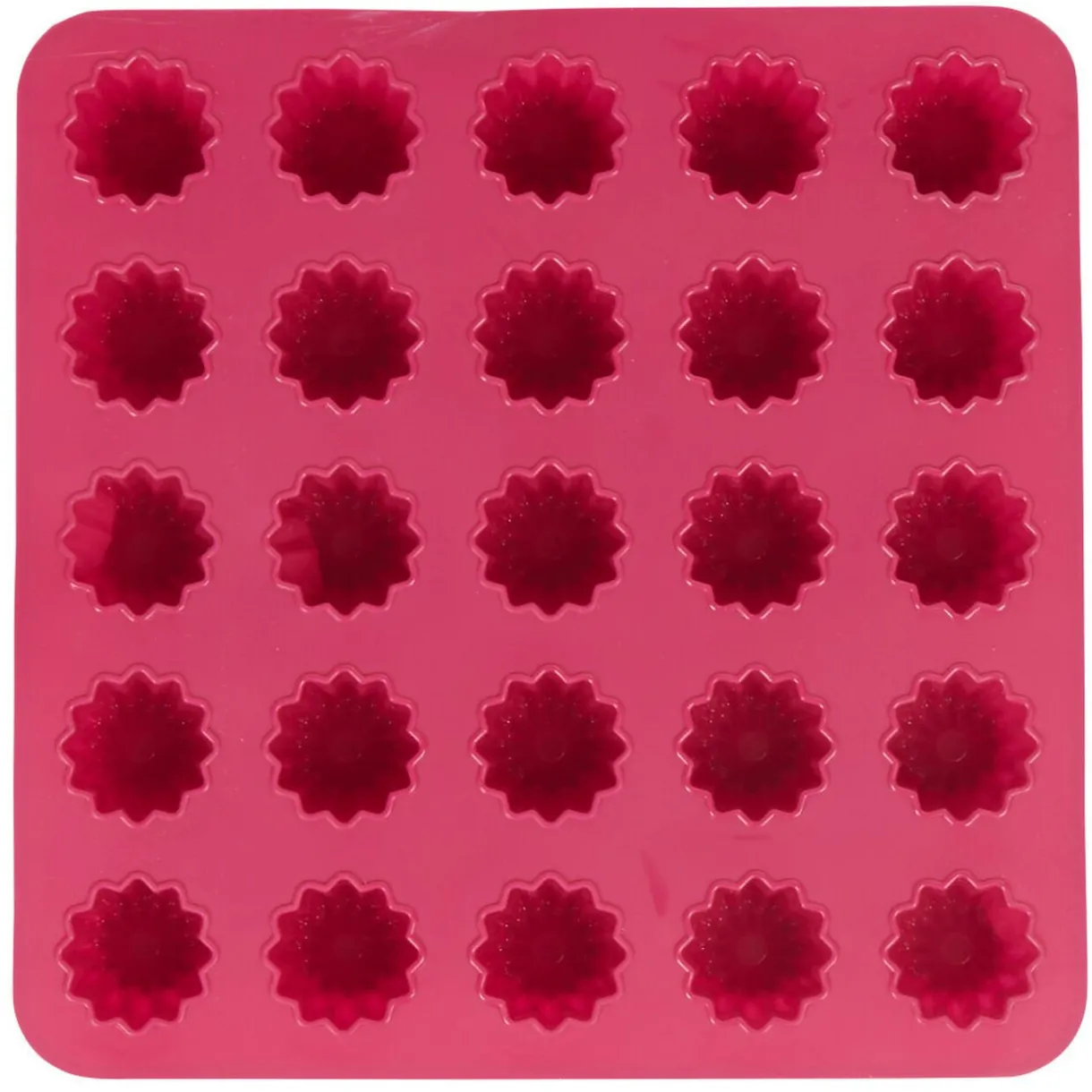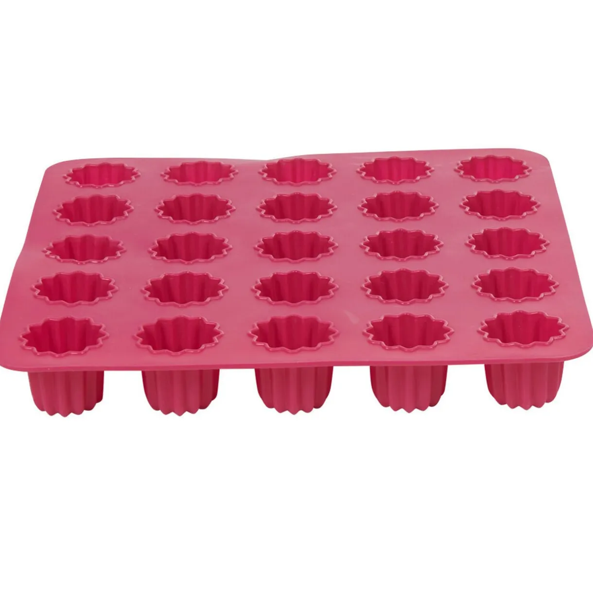 Moule carré en silicone de couleur rose pour la cuisson de 25 délicieux cannelés.