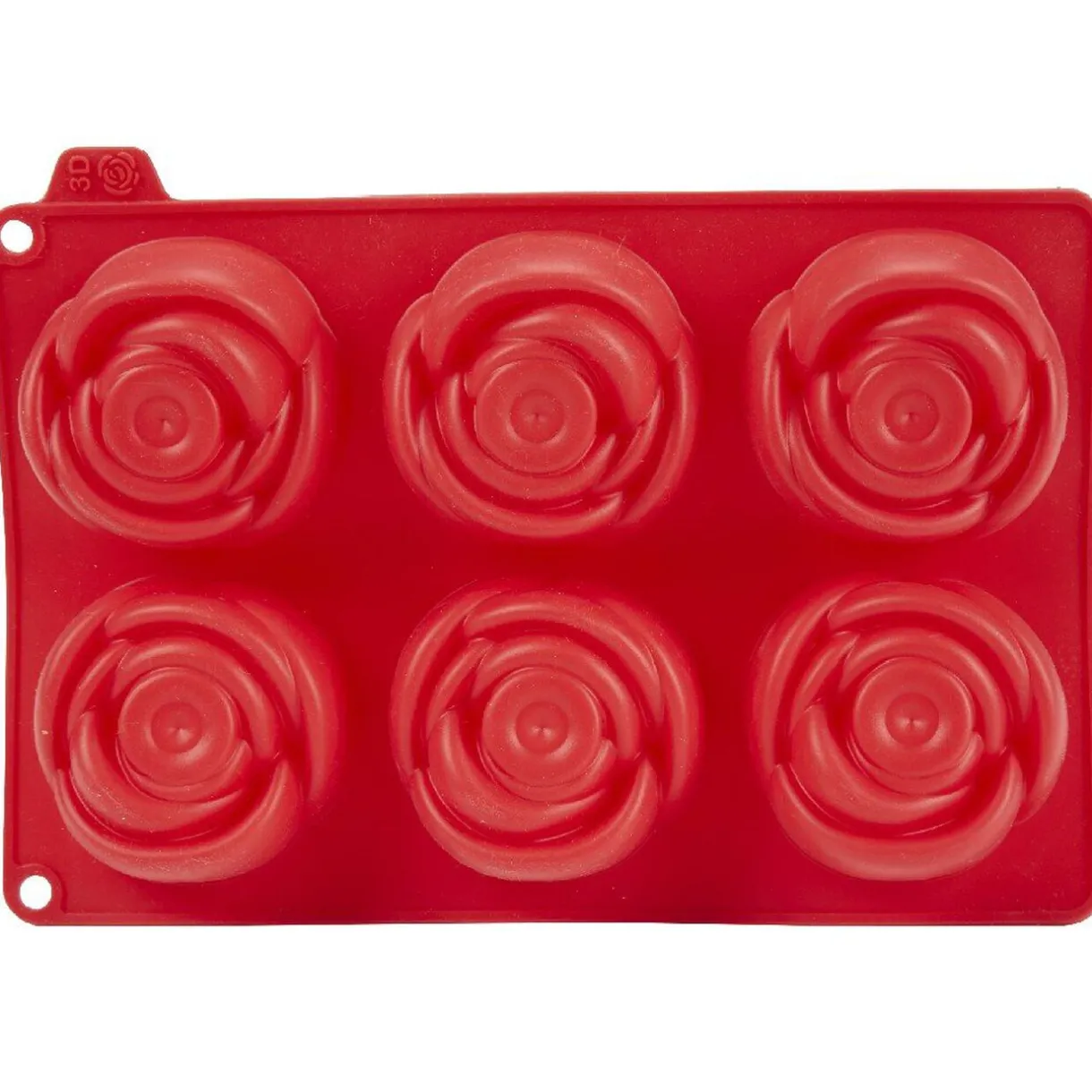 Ce moule rectangulaire en silicone rouge vous permettra de réaliser 6 pâtisseries individuelles en forme de rose.