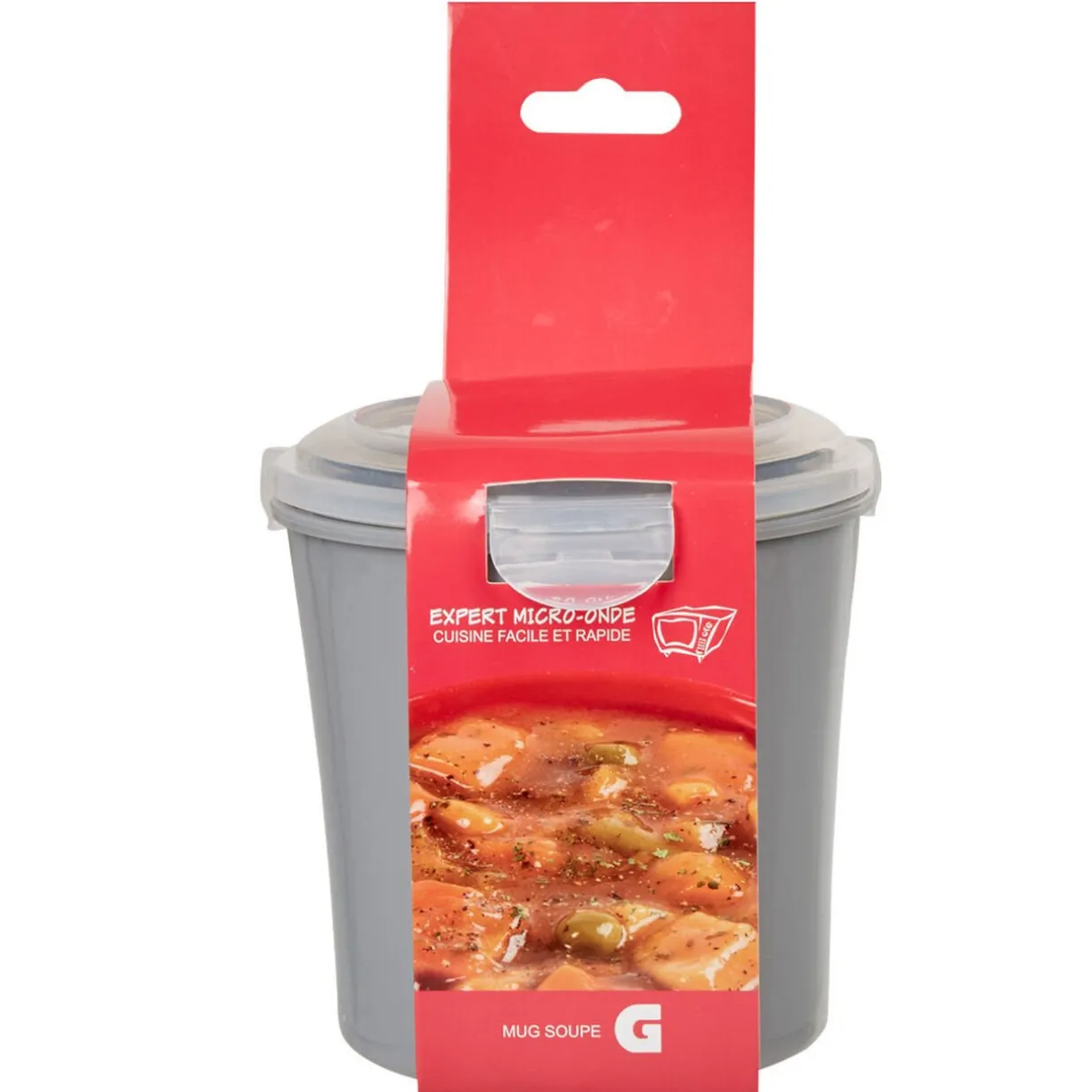 Mug à soupe micro-ondes gris^Gifi Discount