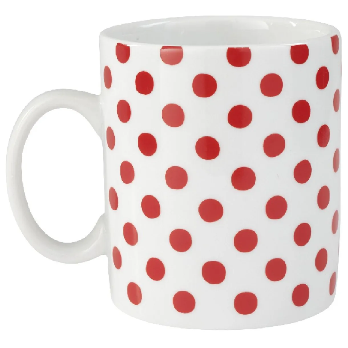 Mug classique blanc motifs pois rouges, d’une contenance de 35 cl.
